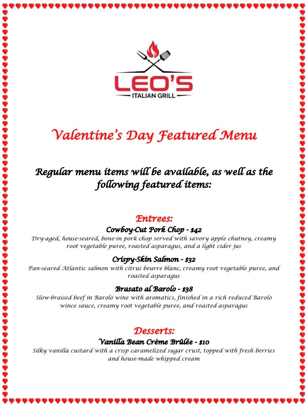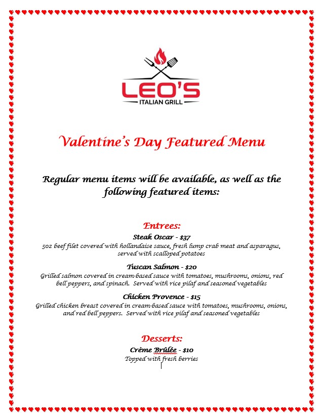 Leo's Italian Grill is owned and operated by Leo Gaertner and his wife, Michelle. Leo began his passion for cooking at the age of 10, when his Grandpap taught him how to bake homemade bread. Starting off as a grill cook, and working his way up to Sous Chef and Executive Chef, Leo learned all types of cuisine, but his favorite was Italian. He then moved to the front of the house and worked as a General Manager of several different concepts. These steps were part of his dream to eventually open his own restaurant. With Michelle's help, they opened Leo's Italian Grill in May, 2019. Serving the Cedar Creek/Bastrop community and those stopping for a meal while traveling through has been a joy. Leo and Michelle are full of gratitude for the support they have received from the community. Leo also offers catering services, which are not limited to only Italian cuisine. Whether it's a party for 20 people or a banquet for 500 people, Leo can make it happen! With a scratch kitchen, the freshest ingredients, and a great chef, you won’t walk away disappointed!